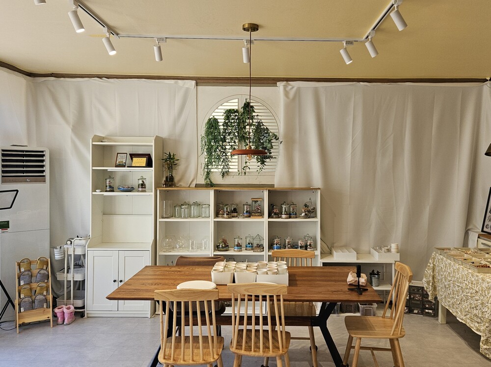 테라리움의 모든 요소(유리용기, 식물 피규어 등)를 직접 선택하여 나만의 스토리를 오롯이 담아낸 작품을 만들 수 있습니다.